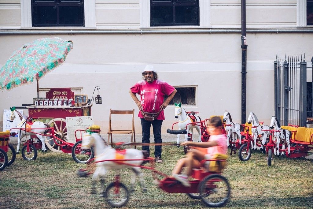 Anche il Microcirco, come già per le edizioni passate, sarà presente per tutta la durata della tappa per allietare i più piccoli. Sono i giochi di un tempo con un brillante vestito di festa! E’ un gustoso svago di un sorprendente, piccolo Microcirco. Una deliziosa Giostrina Retrò a soli 4 posti, e ancora un grande Cavallo di Legno da cui essere trainati, Vespe anni 60 da cavalcare, Bolle di Sapone Giganti, il Tiro ai Barattoli e la Pesca delle Ochette per misurare la propria destrezza e il laboratorio artistico Giracolore per dipingere in libertà. Per gli appassionati di musica meccanica un Piano Melodico Giovanni Racca del 1870 e un organetto a manovella fine ‘800.
