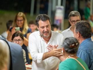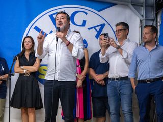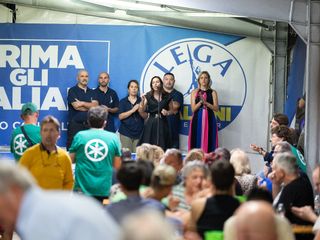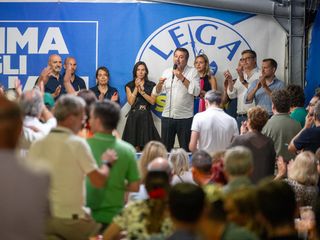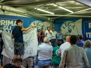 Matteo Salvini arriva a Sumirago intorno alle 22. Ad attendere il leader non c’è il pienone che caratterizzava le feste della Lega qualche anno fa. Ci sono però diversi giovani: alcuni lo bloccano prima che salga sul palco per un selfie d’ordinanza, altri srotolano lo striscione con la scritta: «Imputati perché patrioti».