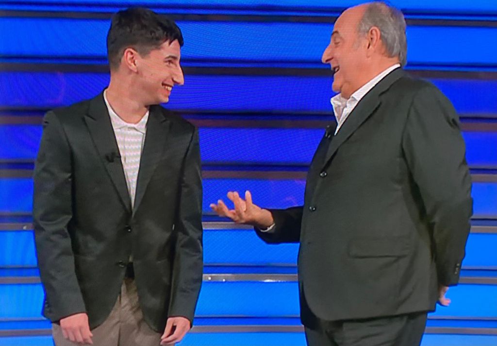 Andrea Siciliano supera i 100 mila euro vinti e finisce abbracciato da mamma e papà, che lo applaudono in studio da Gerry Scotti alla Ruota della fortuna