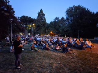 L’atmosfera è quella nota, già apprezzata in edizioni passate: cornice elegante, spettatori attenti e silenziosi, encomiabile resistenza alle zanzare. Il successo, però, cresce: la rassegna cinematografica a Villa Calcaterra, rientrante nel programma di BA Cultura Estate, è partita con la proiezione di “Romeo è Giulietta”, firmato Giovanni Veronesi, e 200 spettatori circa. Quelli arrivati in netto anticipo sull’orario di partenza si sono sistemati sulle sedie previste fin dall’inizio e su quelle aggiunte, gli altri, non pochi, si sono accomodati nell’erba, su teli o sedili improvvisati.