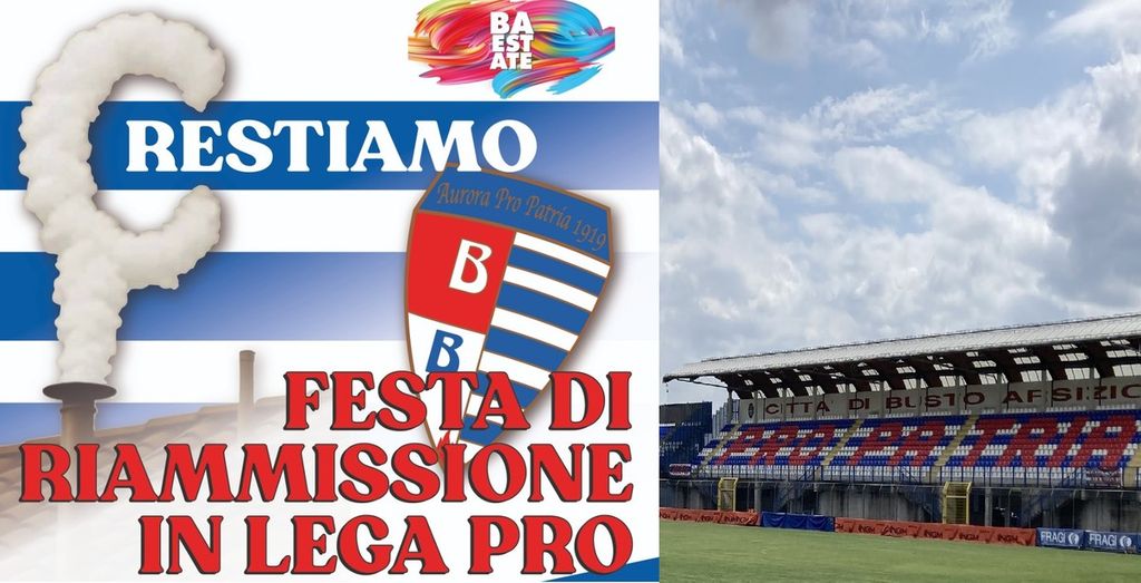 Nel frattempo, è spuntata anche una locandina che annuncia una mini festa in centro, domani sera in piazza San Giovanni dalle 21 alle 22.30 nell'ambito dei classici giovedì sera “made in Busto”. E il titolo dice tutto “C restiamo - Festa di riammissione in Lega Pro” con Dj Set e balli e un annuncio di una sorpresa finale. Presenti i promotori dell'iniziativa (“tutte le anime del mondo biancoblù”) per una serata appoggiata da Comune, Confcommercio, Duc e associazioni dei commercianti.