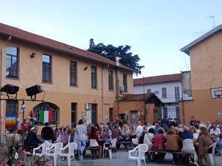 Nel cortile di via Pozzi c’è stata anche la possibilità di vedere la mostra su Peppino Impastato e di assistere alla presentazione del libro “L’erba dei conigli” di Massimo Aspesani e Milly Paparella sulla storia vera di una staffetta partigiana di Busto Arsizio, Alberto Mereghetti.