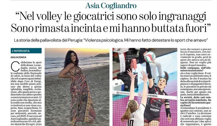 (fonte Ansa) Asja Cogliandro, giocatrice di pallavolo nata a Busto Arsizio, racconta la sua “ordinaria” storia di atleta incinta a "La Stampa".