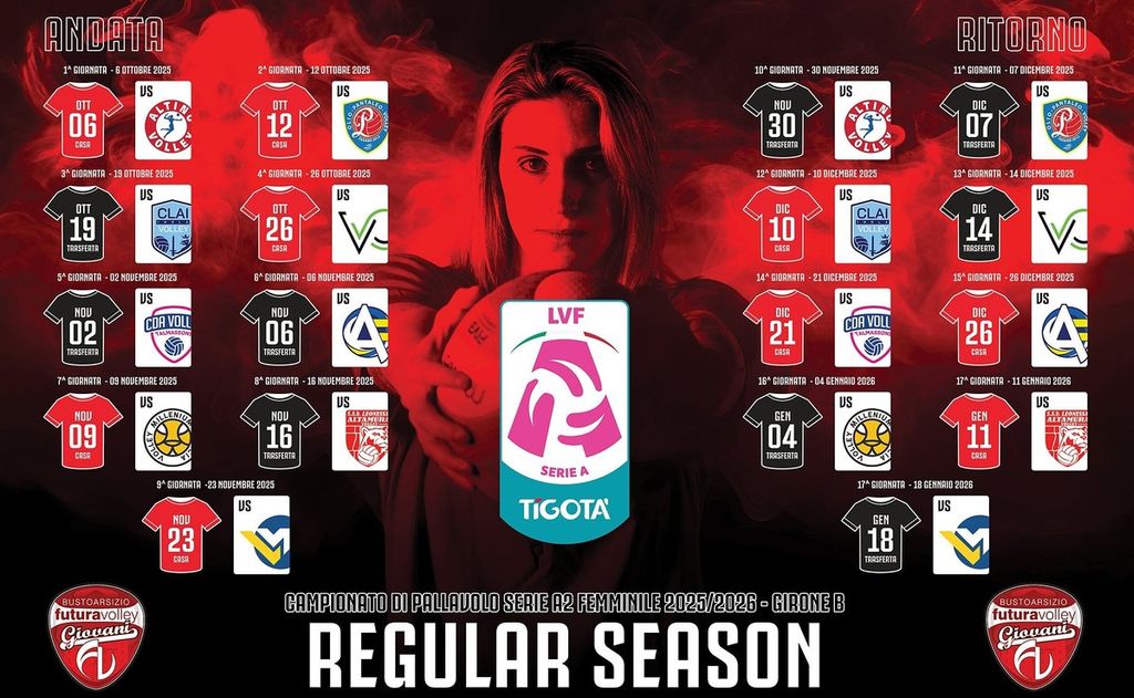 L’esordio è fissato per lunedì 6 ottobre, quando la Futura affronterà la Tenaglia Altino Volley: sulla carta una sfida abbordabile, ma capace di mettere subito alla prova la preparazione e la tenuta mentale del gruppo. Nota di colore: il derby famigliare tra la palleggiatrice bustocca Helena Sassolini e la gemella Victoria. Una settimana dopo, il 12 ottobre, le ragazze di coach Gianfranco Milano torneranno sul taraflex “amico” per sfidare la matricola pugliese Olio Pantaleo Fasano.