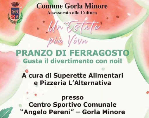 A chiudere gli eventi del cartellone “Un’Estate più Viva”, organizzato dal Comune di Gorla Minore per offrire a chi è rimasto in paese durante le settimane tradizionalmente dedicate alle ferie, sarà la prima edizione del pranzo di Ferragosto. A ospitare l’evento sarà il Centro Sportivo Comunale “Angelo Pereni” di Gorla Minore, che per una giornata si trasformerà in un luogo di ritrovo, dove chi non ha voluto - o potuto - partire per le vacanze potrà festeggiare Ferragosto insieme ad amici e vicini.