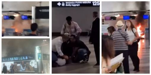 VIDEO. Martellate al check in e cestino in fiamme: esagitato scatena il panico a Malpensa