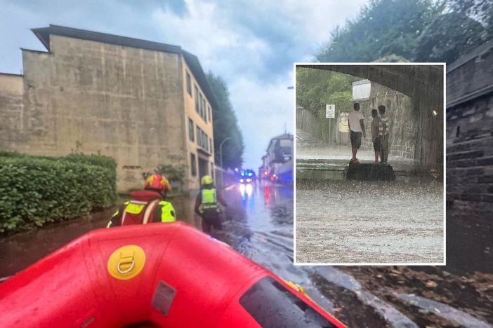 Busto, la cronaca di un salvataggio surreale: tre giovani recuperati in gommone dal tetto del loro furgone sommerso dall'acqua