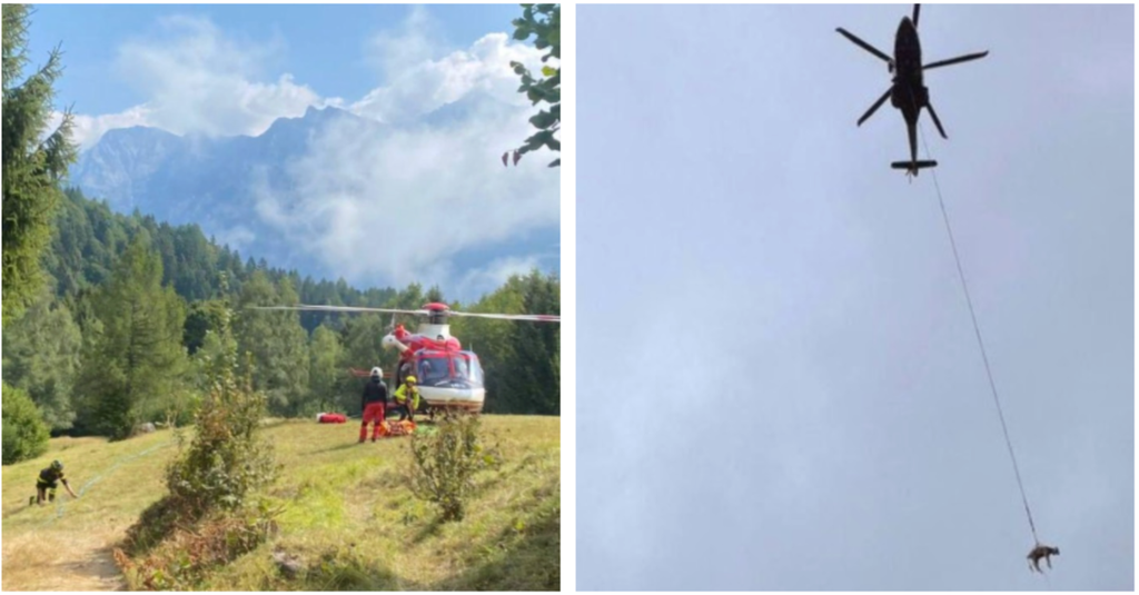 Vitello cade in un dirupo, recuperato dai vigili del fuoco con l’elicottero dopo un intervento di due giorni