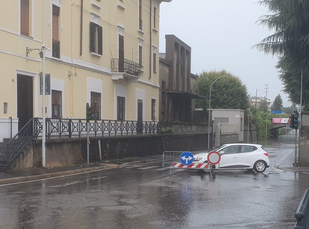 Pioggia intensa e vento forte hanno colpito Busto e il Bustese intorno alle 14: sottopassi inaccessibili e strade trasformate in acquitrini. Disagi su tutta la viabilità, anche in autostrada