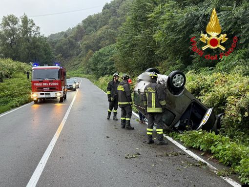 Luino, auto si ribalta e finisce nel fosso