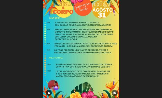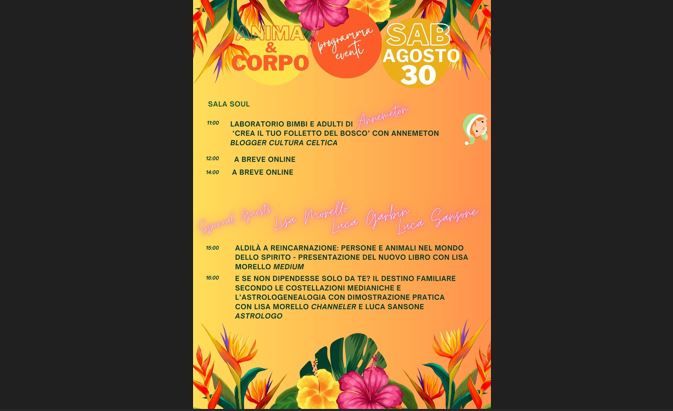 Il Festival del Benessere Anima & Corpo rappresenta dunque un’opportunità per dedicarsi al proprio equilibrio interiore ed esteriore, incontrare professionisti del settore, sperimentare nuove esperienze e trascorrere due giornate all’insegna della salute, della consapevolezza e della condivisione.