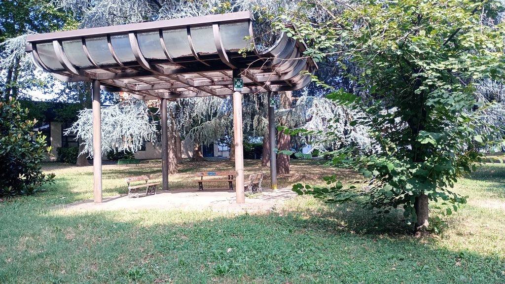 Nel polmone verde, che è videosorvegliato, sono posizionati tavoli da pic nic, panchine (nella porzione vicina alla struttura sanitaria sono anche coperte) e cestini in ottimo stato. Tra gli alberi si apre un’ampia radura delimitata da due porte senza rete, utile per chi voglia giocare a calcio.