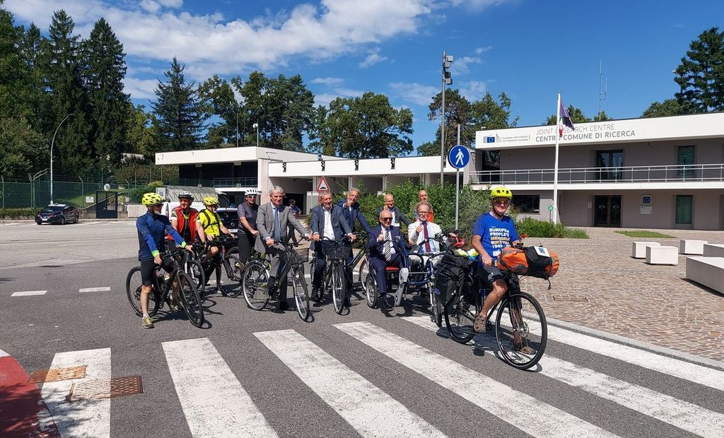 Proprio al Jrc si è svolta stamattina la presentazione del viaggio europeo con tanto di pedalato su parcheggio esterno e sulla rotatoria di Ispra, capeggiata ovviamente dal Cavaliere della Repubblica Bloisi con al seguito il risciò condotto dal Prefetto di Varese Salvatore Pasquariello e dal direttore del Jrc Rien Stroosnijder e le bici con in sella il sindaco di Varese Davide Galimberti, il dirigente dell'Ufficio Scolastico territoriale di Varese Giuseppe Carcano, il presidente della Fondazione Europea Cefalonia-Corfù Costantino Ruscigno e altri ciclisti amici di Giovanni Bloisi. A dare lo start con la bandiera dell'Europa il sindaco di Brebbia Giulio Brughera, presente anche il primo cittadino di Luino Enrico Bianchi.