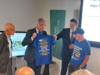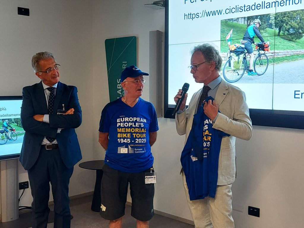 «Con emozione ed orgoglio lancio questa edizione 2025 della "bicicletta europea" - le parole del direttore Stroosnijder - è un viaggio speciale non solo perché nel 2025 ricorrono gli anniversari della fine della Guerra e della Dichiarazione di Schumann ma perché per un futuro migliore per i giovani c'è bisogno di unità europea. Giovanni è l'esempio di un'Europa unita e solidale che tiene viva la memoria con dedizione e passione. Spero sia uno stimolo per promuovere i valori europei anche da parte delle scuole del nostro territorio per lavorare insieme per un Europa più forte e unita».