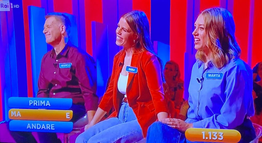 Questa sera sono arrivati a giocarsi l'ultima parola abbastanza in scioltezza, con un montepremi di 2.266 euro: "prima" è stata la parola a cui abbinare il termine nascosto ("ma....e"), che ha convinto i campionissimi varesini a comprato il terzo elemento e, cioè, "andare" (montepremi dimezzato a quota 1.133 euro). La parola scelta è stata "marce", quella giusta era "maggiore".