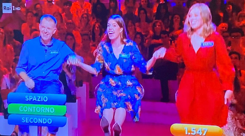 Avendo di fronte soltanto "spazio" e "co... o", Marco, Sara e Marta hanno comprato l'ultimo elemento ("secondo"), pronunciando poi la parola giusta - e cioè "contorno" - che ha aggiunto 1.547 euro al totale già vinto di 83.844 euro.