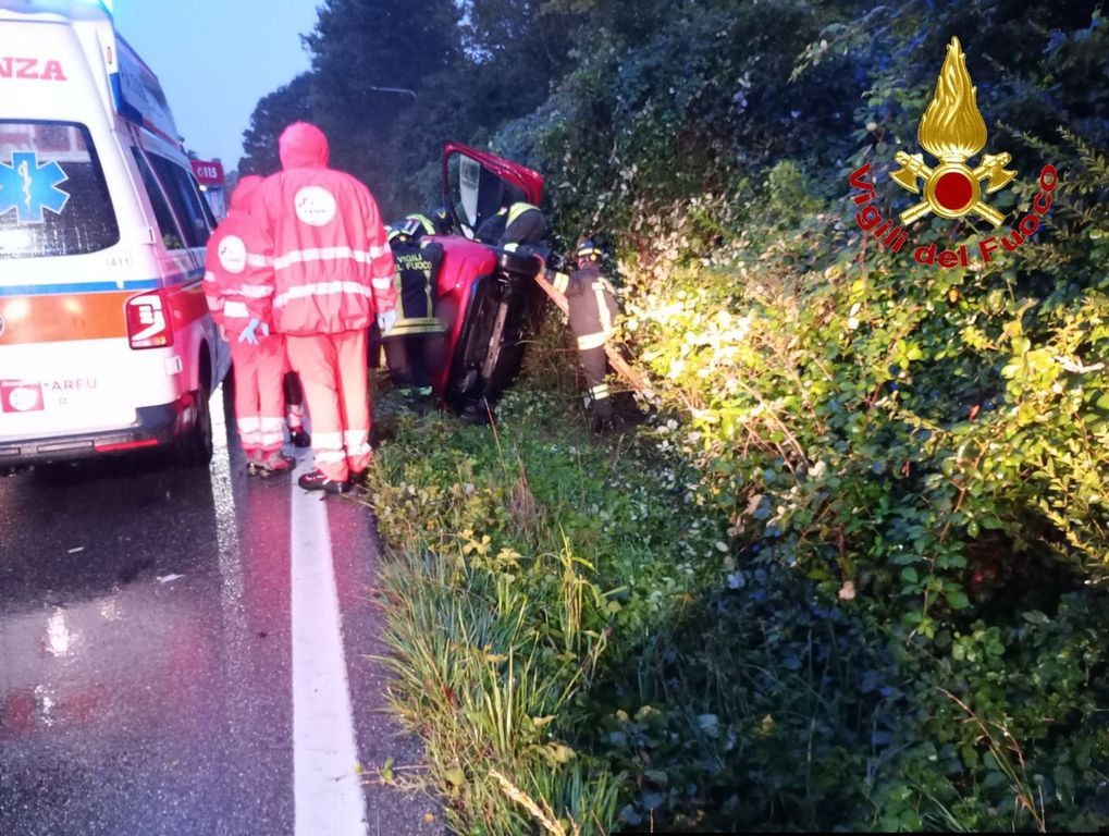 FOTO. Schianto sulla statale 394 a Cuveglio, un ferito nell'auto ribaltata