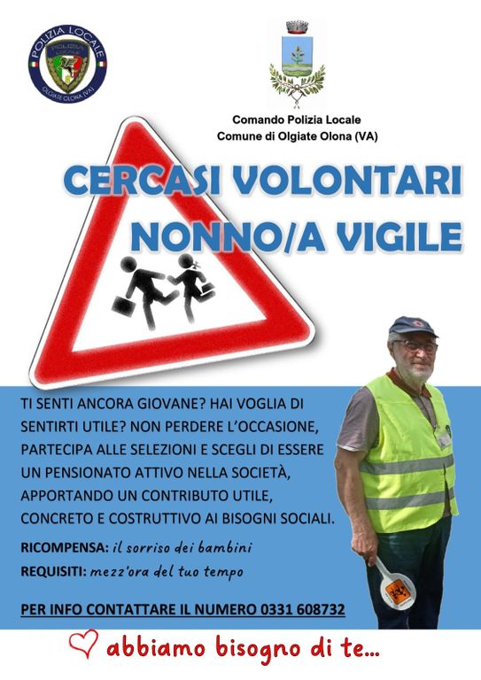 Per informazioni e adesioni: Comando di Polizia Locale - Vicolo delle Immagini 1 - telefono 0331.608732 - www.comuneolgiateolona.it