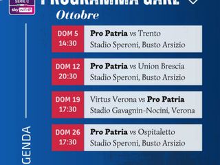 La decima giornata vedrà la Pro Patria impegnata in trasferta sul campo della Virtus Verona, domenica 19 ottobre alle 17.30, mentre il 26 ottobre (sempre alle 17.30) sarà la volta di un’altra sfida interna, contro l’Ospitaletto.