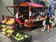Dopo la montagna, si torna al mare. Un’escursione su una piccola barca bianca, con un tetto di lamiera decorato di foglie di palma, ci trasporta tra isolotti e mangrovie. L’acqua cambia colore di continuo: verde smeraldo vicino alla riva, azzurro intenso nelle aperture più profonde. A bordo, anche uomini e donne del posto, abituati a quel paesaggio che per noi è una scoperta continua. C’è chi osserva l’acqua, chi incrocia le braccia e fissa l’orizzonte, come se il mare fosse un libro già letto mille volte. Noi, invece, non smettiamo di sfogliarlo. L’isola è anche un mosaico di culture che convivono ogni giorno. Lo si percepisce a Port Louis, la capitale, con le sue strade caotiche e il miscuglio di lingue, volti e profumi. Un carretto di legno, con insegne in francese e inglese, offre succo di frutta appena spremuto. In fila, turisti e abitanti si mescolano senza distinzione: cocchi verdi, ananas, papaie e manghi vengono affettati al momento, trasformati in bicchieri colmi di freschezza. Anche la cucina racconta l’isola: curry di pesce su foglie di banano, farata speziate, dolci di riso accanto a piatti europei. Sapori diversi che convivono senza primeggiare.