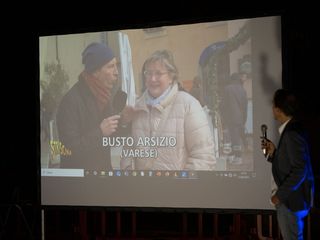 Poi è esploso il viaggio di Cristiano Militello prima con la sua esuberanza tra il pubblico, quindi in Italia fra battute, immagini e video. Cartelli, scritte sui muri, tante le "tracce" che uniscono ironia e poesia. Il tutto, come avviene in "Striscia la notizia" con il top raggiunto negli stadi tra gli striscioni. Non poteva mancare una carrellata delle persone incontrate proprio a Busto Arsizio, città dove Cristiano ha compiuto diverse incursioni.