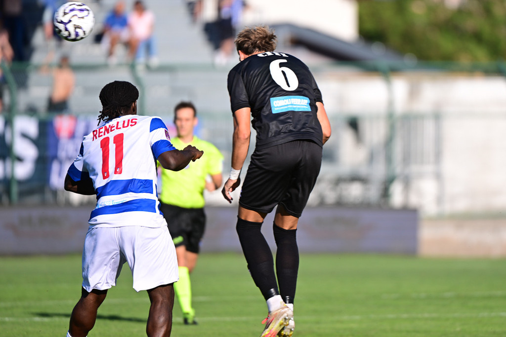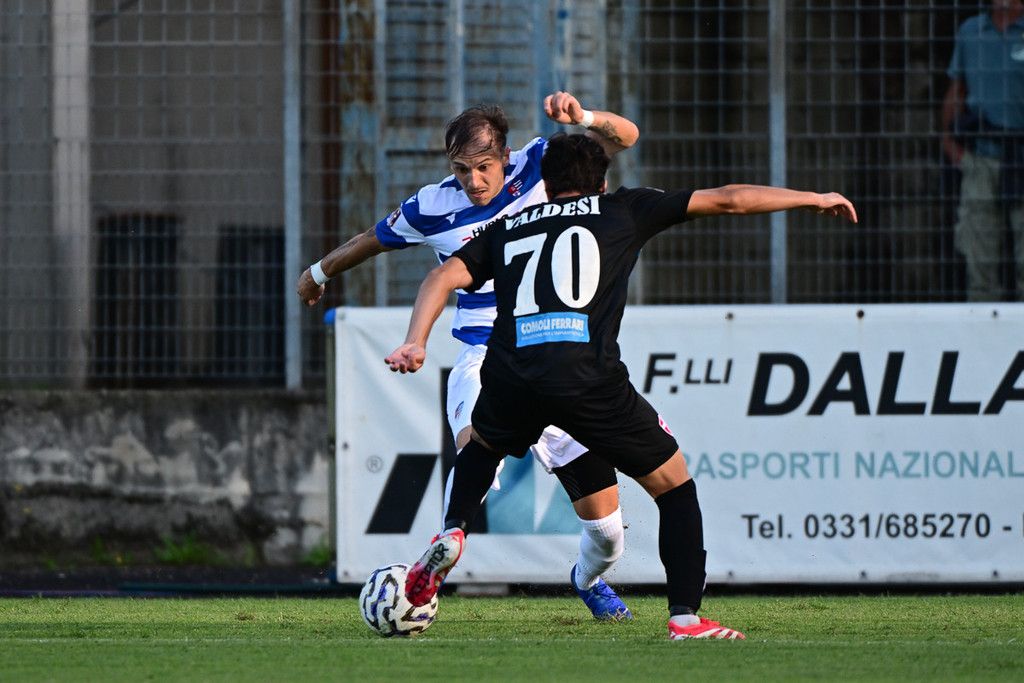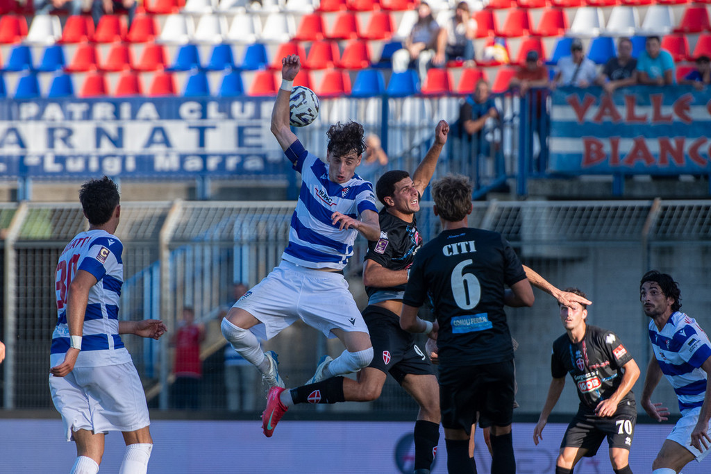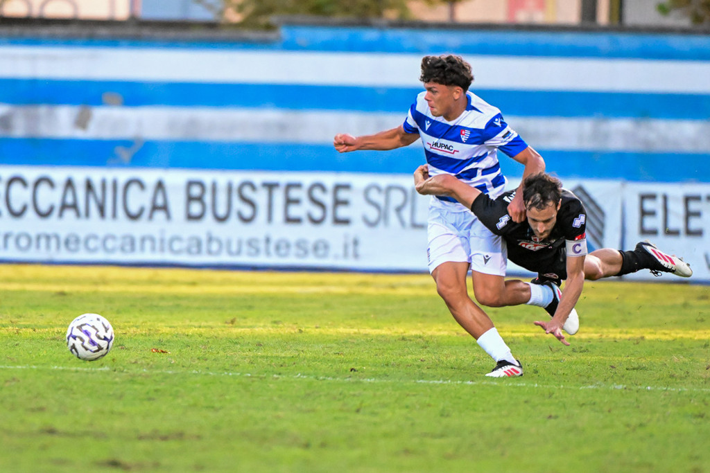Al 22’, primo vero brivido per la Pro Patria: buco centrale nella retroguardia biancoblù, Donadio serve Basso che calcia, Rovida respinge e Masi è provvidenziale nell’anticipare Da Graca, pronto al tap-in a porta vuota.