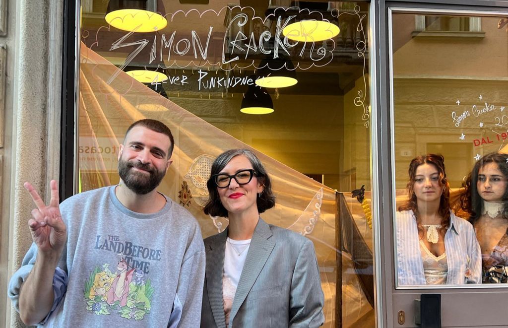 Un pomeriggio intenso, tra moda, riflessione e creatività radicale. Sabato 20 settembre lo spazio Madama Vintage di Gallarate ha accolto la preview della nuova collezione Spring/Summer 2026 di Simon Cracker, marchio che ha fatto dell’upcycling e della ribellione gentile la propria qualità distintiva. L’evento, organizzato dalla boutique gallaratese, ha visto lo stilista come ospite del pomeriggio, tra un aperitivo di benvenuto e un talk dedicato a punk, riciclo e gentilezza.