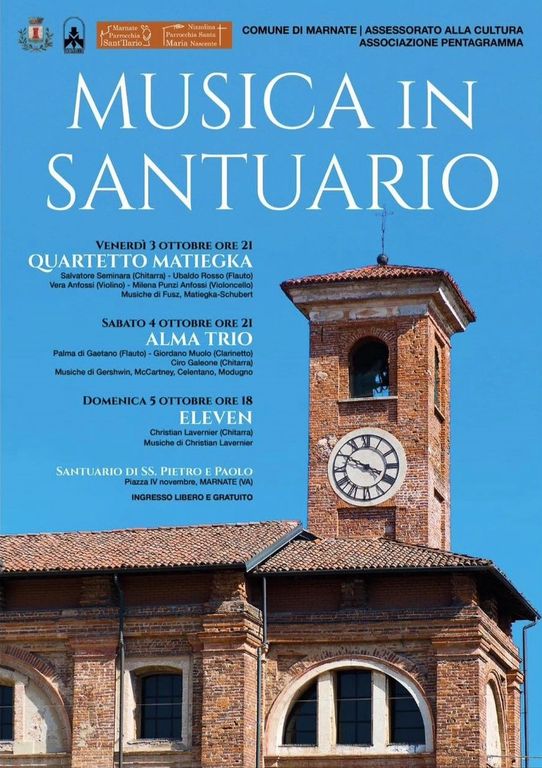 L’associazione, che opera a Marnate da più di 30 anni, ha organizzato, con la collaborazione del comune, “Musica in Santuario”, una tre giorni di concerti che racchiuderà al suo interno diversi appuntamenti di spessore.