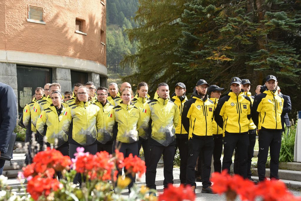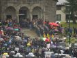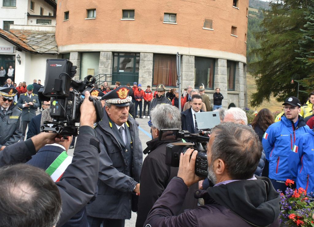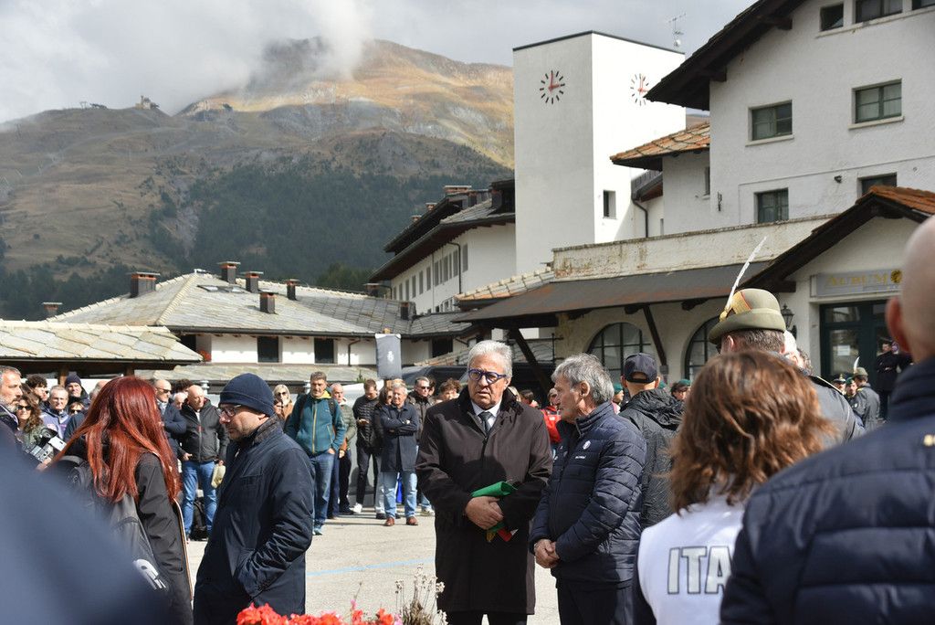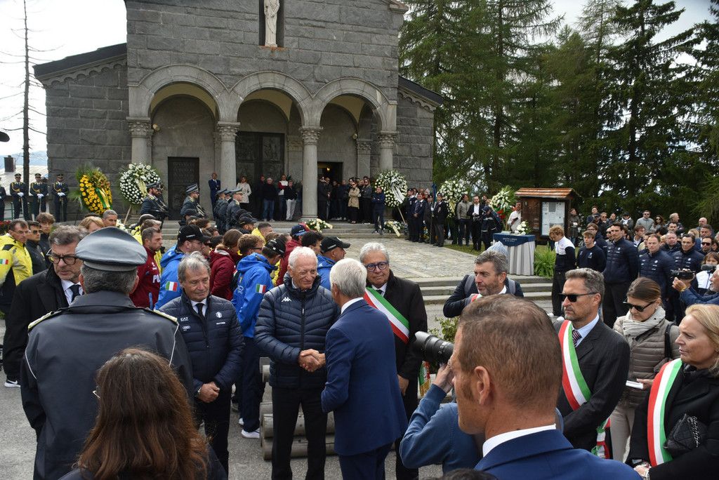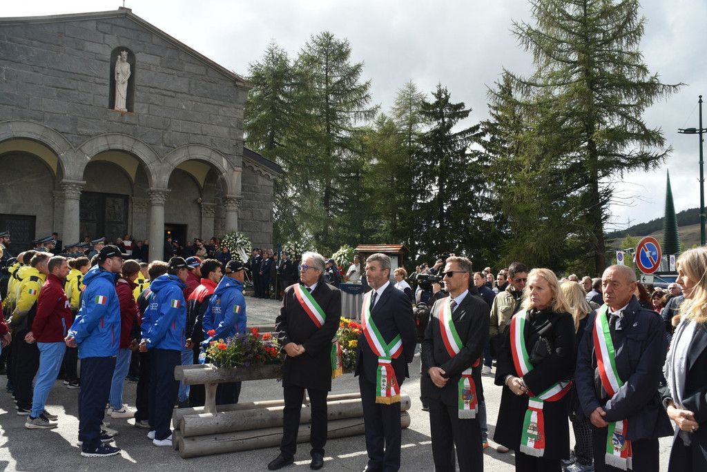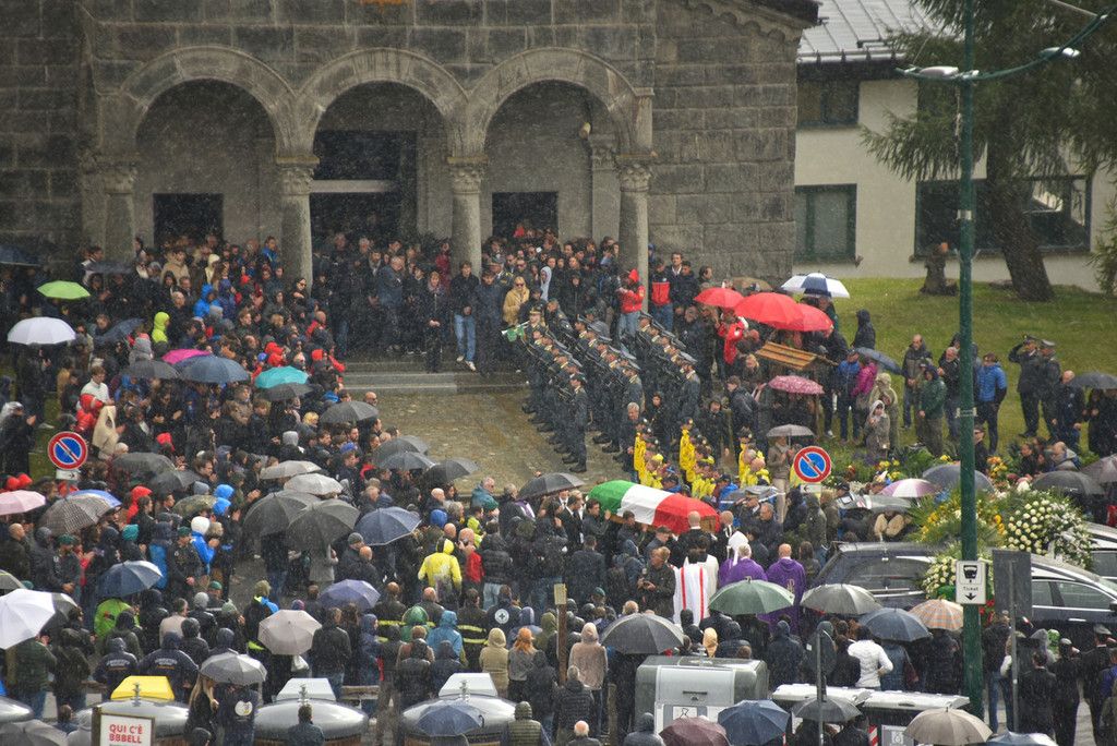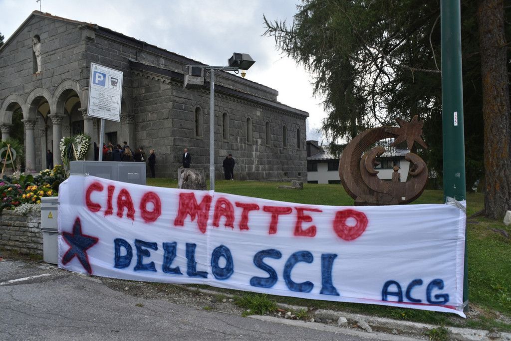 Sul sagrato della chiesa tante corone e mazzi di fiori, delle autorità ma anche di parenti e amici. Tra le corone quelle di Italy Downhill, del Centro Sportivo della Guardia di Finanza, della Fisi. Ai piedi della bara un cuscino della famiglia.