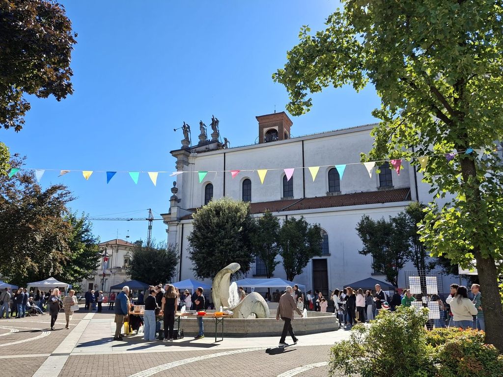 Baciata dal sole la festa patronale di San Michele: temperatura mite e cielo terso accolgono parrocchiani e passanti sulla piazza occupata dagli stand. All’uscita dalla messa solenne, celebrata questa mattina dal parroco, don Giorgio Fantoni, i fedeli passeggiavano tra i banchetti dedicati alle tante attività portate avanti in parrocchia: dalla solidarietà all’educazione, dal teatro ai gruppi familiari, dallo sport alla cultura, il cuore pulsante di San Michele si è mostrato in tutta la sua vitalità. A riempire lo sguardo, lo scintillio di auto e moto storiche schierate nei pressi della chiesa. A pochi metri, strada strappata al traffico e conquistata dai bambini con la Carramatta.