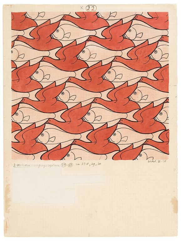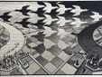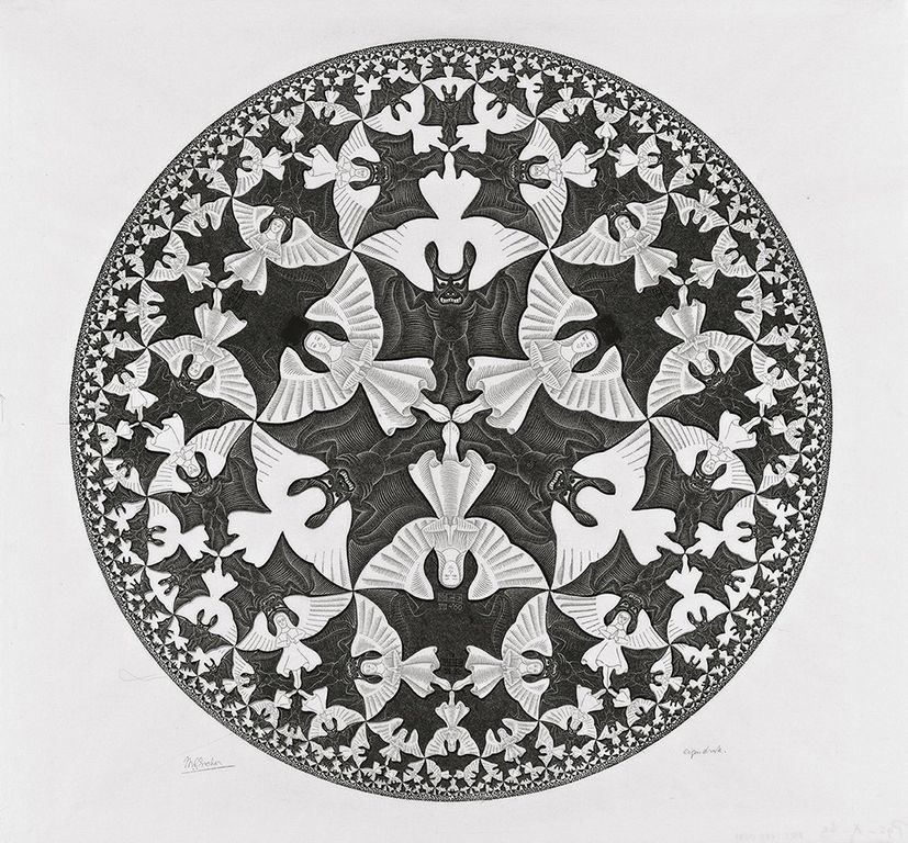 Le opere dell’artista e incisore sono immediatamente riconoscibili per la loro predisposizione “costruzioni impossibili” e portano al concetto di infinito con lo studio personale degli schemi geometrici trasformati in forme diverse e chiaramente paradossali. Si pensi alla progettazione delle piastrelle per la sua casa di Roma nel 1926, tra simmetrie inusuali con una proprietà delle forme e dei colori insospettabile. Nel tempo (1937) gli studi sulla matematica applicata all’arte trovano libera interpretazione nell’approfondimento sulla cristallografia (grazie agli approfondimenti del magiaro György Pólya). L’incontro con il matematico Harold Scott MacDonald Coxeter segna l’inizio di una nuova fase delle sue ricerche artistiche dove le dimensioni dei suoi disegni progressivamente si restringono dal centro verso la periferia.