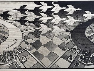 Le opere dell’artista e incisore sono immediatamente riconoscibili per la loro predisposizione “costruzioni impossibili” e portano al concetto di infinito con lo studio personale degli schemi geometrici trasformati in forme diverse e chiaramente paradossali. Si pensi alla progettazione delle piastrelle per la sua casa di Roma nel 1926, tra simmetrie inusuali con una proprietà delle forme e dei colori insospettabile. Nel tempo (1937) gli studi sulla matematica applicata all’arte trovano libera interpretazione nell’approfondimento sulla cristallografia (grazie agli approfondimenti del magiaro György Pólya). L’incontro con il matematico Harold Scott MacDonald Coxeter segna l’inizio di una nuova fase delle sue ricerche artistiche dove le dimensioni dei suoi disegni progressivamente si restringono dal centro verso la periferia.