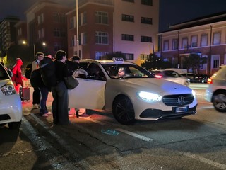 La tensione attorno ai taxi è salita alle stelle. Davanti al vicino Teatro Sociale si è creata una situazione critica: diversi passeggeri pretendevano di salire sullo stesso veicolo, tanto che l'autista è dovuto scendere per cercare di sedare gli animi. La discussione è degenerata al punto da rendere necessario l'intervento di una pattuglia della Polizia di Stato per riportare la calma.