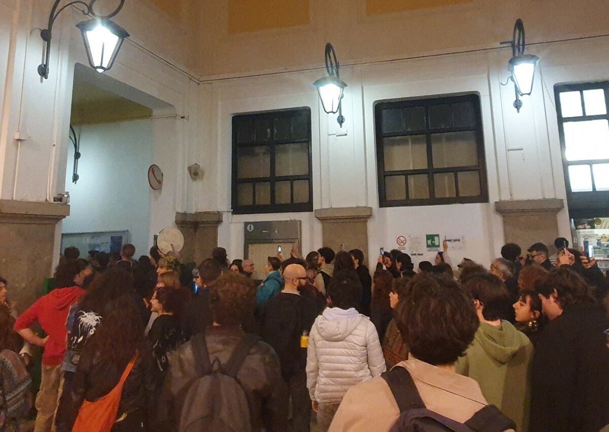 A quel punto, la marcia dei pro Pal è ripartita questa volta sì verso l'ingresso dello scalo di piazza Volontari della Libertà. La Polizia era pronta a sbarrare la porta che separa l’atrio della stazione e la banchina. Dopo una resistenza di alcuni minuti, il nutrito gruppo di manifestanti è riuscito a forzare il blocco e a dirigersi versi i binari, che sono stati occupati, causando lo stop della circolazione dei treni. Alcuni manifestanti sono invece rimasti sulla banchina.