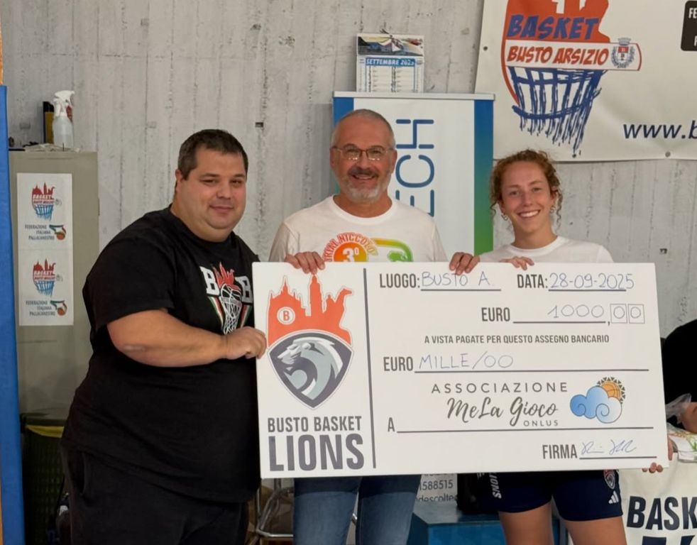 Al termine della due giorni organizzata dai Basket Busto Lions, il risultato più importante non è stato quello sul campo, ma la cifra sull'assegno simbolico consegnato alla famiglia di Niccolò: 1000 euro, interamente donati all'associazione "MeLa Gioco Onlus".