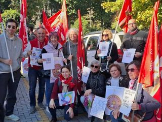 Presidio unitario oggi, martedì 7 ottobre, per i lavoratori di Coop Lombardia davanti al punto vendita di Busto Arsizio di viale della Repubblica 26 a seguito della sua cessione ad Eurospin. In campo Filcams Cgil Lombardia, Fisascat Cisl Lombardia, Uiltucs Lombardia
