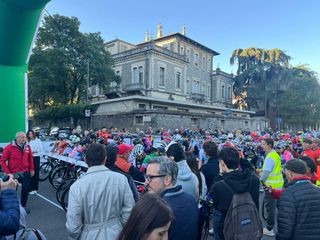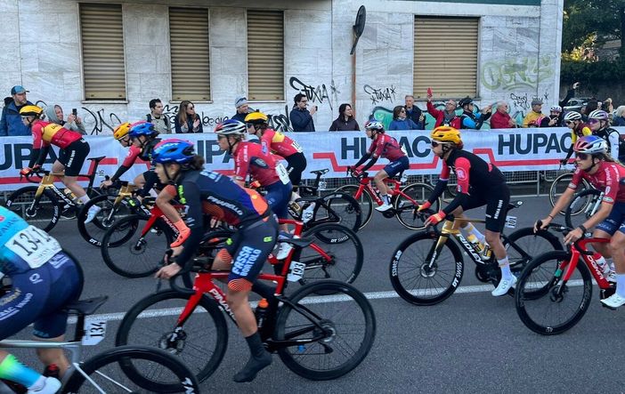 La partenza femminile ha visto un discreto numero di tifosi dare la caccia all'autografo, a partire dalla campionessa mondiale Magdeleine Vallieres (FOTO SOTTO) che pedalava in riscaldamento con il team sotto i portici di piazza San Michele e di tante altre atlete che hanno brillato a livello europeo e italiano (TUTTO SULLE PARTECIPANTI QUI).