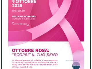 Nell’ambito di “Donne in salute – Le conferenze per stare bene”, la Galleria Boragno di via Milano propone, giovedì 9 ottobre, alle 20.30, un appuntamento con Francesco D’Errico, chirurgo senologo, e Lucrezia Giaramita, specialista in radiodiagnostica di San Carlo Diagnostic Cdtt. Questo incontro è organizzato in collaborazione con San Carlo Istituto Clinico,