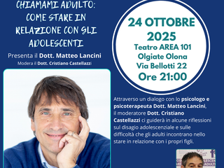 È questo, in sintesi, l’incontro “Chiamami Adulto: come stare in relazione con gli adolescenti”, organizzato dal comune di Olgiate Olona, con il patrocinio dell’assessorato ai servizi sociali, in collaborazione con il Rotary Club Ticino, che si svolgerà all’interno del Cinema Teatro AREA 101 alle 21 di venerdì 24 ottobre.