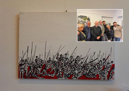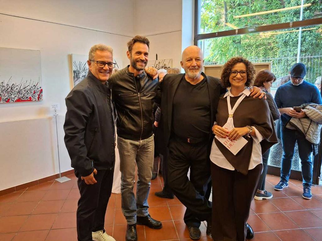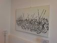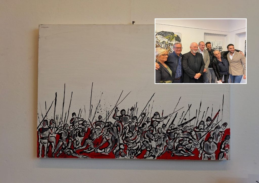 «Chi fu il primo che inventò le spaventose armi? Da quel momento furono stragi, guerre (…) Siamo noi che usiamo malamente quello che egli ci diede per difenderci dalle feroci belve». Nella citazione di Tibullo rintracciabile nella presentazione di “Battaglie d’Occidente” si trova una parte del messaggio racchiuso nelle opere di Stefano Chiodaroli, attore, cabarettista, cultore della pittura. La personale inaugurata oggi allo Spazio Arte Carlo Farioli di Busto (foto in fondo) tradisce il fascino per il movimento, la dinamicità, le battaglie appunto. Evoluzione, su acrilico, di quelle che Chiodaroli racconta di avere disegnato fin da giovanissimo, quasi un antidoto alle imposizioni e alla disciplina, un'esplosione di energia vitale.