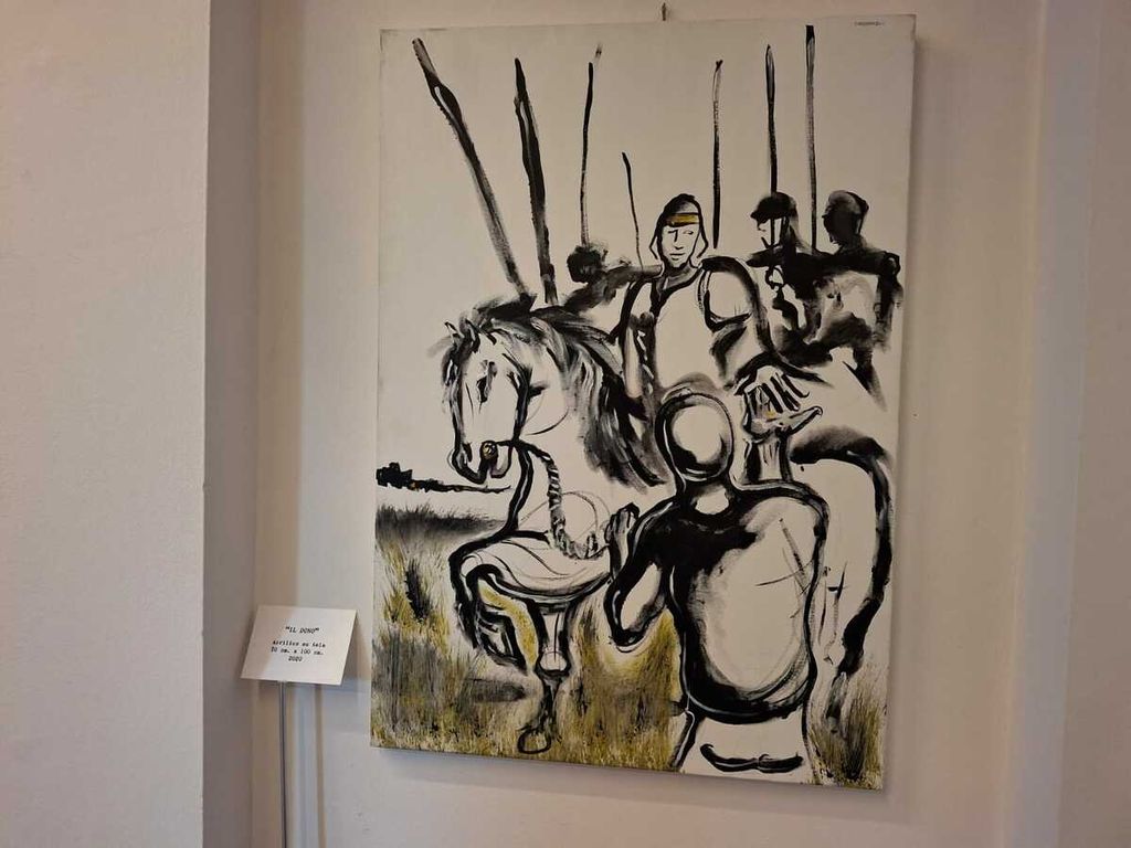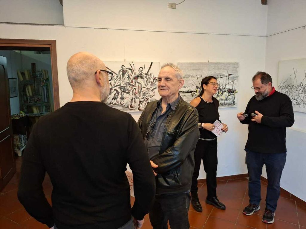 «Non canto la guerra, canto la forza. Disegnare battaglie è sempre stato il mio modo di esprimermi, vedevo e vedo nel cavaliere, magari impersonato dal soldatino dell’infanzia, un uomo virtuoso, un guerriero senza macchia e senza paura. La figura di don Chisciotte è ricorrente. E se cerchi nelle tele è sempre nascosto un autoritratto. Conta la persona».