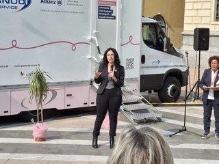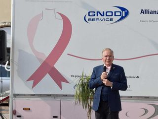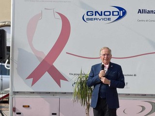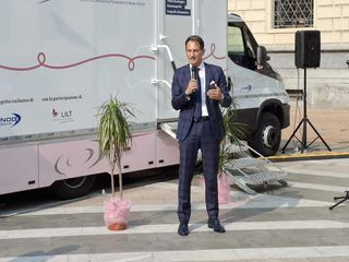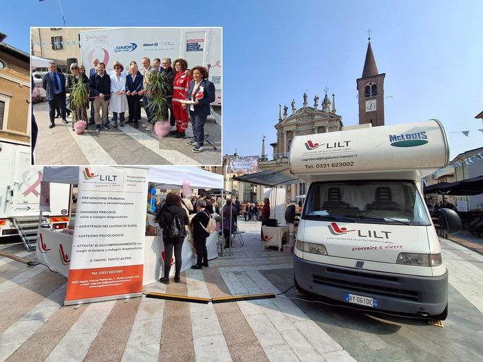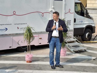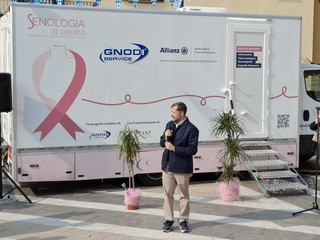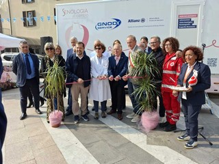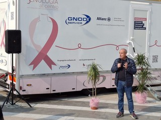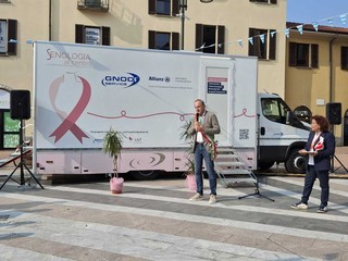 Il dato positivo è che ancora una volta gli slot per visite senologiche gratuite in piazza San Giovanni sono stati prenotati un attimo: la clinica mobile messa a disposizione dal Gruppo Gnodi (con mammografo di ultima generazione ed ecografo) fa registrare un nuovo tutto esaurito. “Senologia al centro” (iniziativa che da quattro anni occupa pacificamente il cuore di Busto nel pieno dell’Ottobre Rosa dedicato alla prevenzione) è sempre appuntamento atteso, apprezzato, sfruttato (vedi anche QUI). Il dato negativo lo ha ricordato, poco prima del taglio del nastro odierno, Giuseppe Catanoso, direttore sanitario di Ats Insubria: «Le campagne di screening normalmente registrano basse percentuali di adesione». La sfida, citata a più riprese e quasi coralmente nella breve cerimonia, è ardua: diffondere i controlli, anche andando nelle periferie (accanto alla clinica mobile ha trovato posto in piazza un camper donato a Lilt che ha proprio questo scopo). Anche perché, ha ammonito Ivanoe Pellerin, presidente di Lilt – Associazione provinciale di Varese, «…i tumori colpiscono sempre di più le giovani. Al contempo, va detto che un’azione efficace sugli stili di vita farebbe calare del 30 per cento i casi di tumore, questa è la stima, e che la diagnosi precoce può condurre alla guarigione».