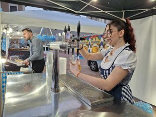 Spine al lavoro, nelle piazze Santa Maria e San Giovanni, per la festa della birra che porta in centro, a Busto, un po’ di Baviera. Il viavai è animato soprattutto da gruppi di ragazzi e famiglie, che hanno iniziato ad assieparsi ai tavoli mentre all’ombra della basilica si preparava il concerto della tribute band “Effettoliga”.