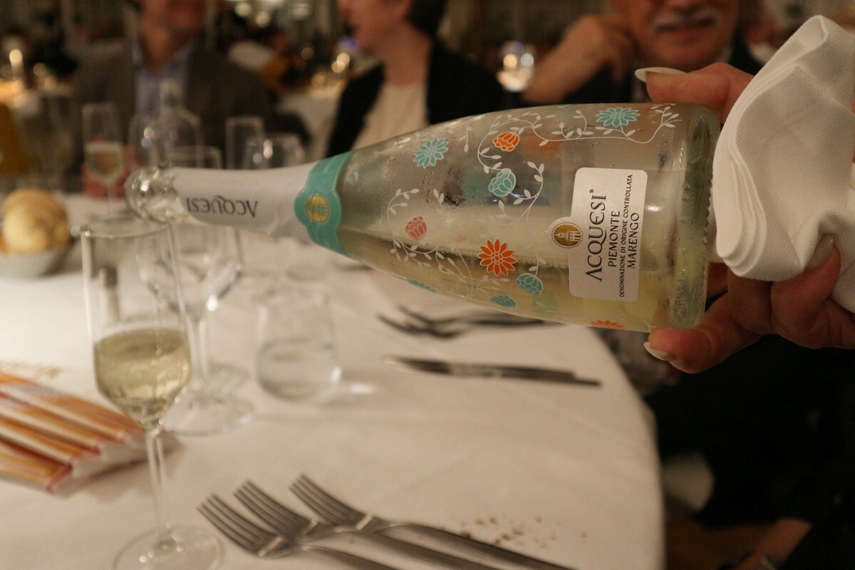 L’Antipasto ha stupito i presenti con un cestino di pasta sfoglia ripieno di hummus al basilico e verdure arrostite, con germogli e fiori eduli, tra cui tagete e calendula,  per un perfetto equilibrio tra gusto, colore e leggerezza, ancora una volta accompagnato dal Marengo DOC Acquesi.