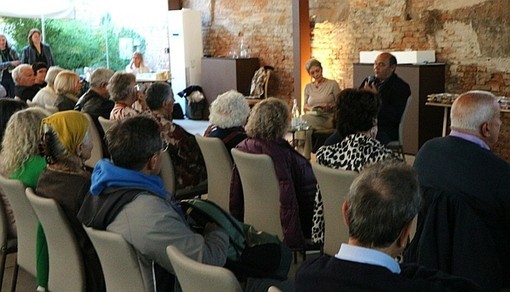 Sotto la Pergola bioclimatica, si è poi tenuto l’incontro con Claudio Porchia, giornalista ligure e ideatore del Festival nazionale della Cucina con i Fiori, affiancato da Mariagrazia Dammicco, presidente del Wigwam Club Venezia. I due hanno presentato il volume Ricette per ogni stagione di Libereso Guglielmi, recentemente pubblicato da Edizioni SemiRurali: un libro che racconta con semplicità e poesia la cucina naturale del “giardiniere di Calvino”, custode di un sapere botanico e gastronomico d’altri tempi.