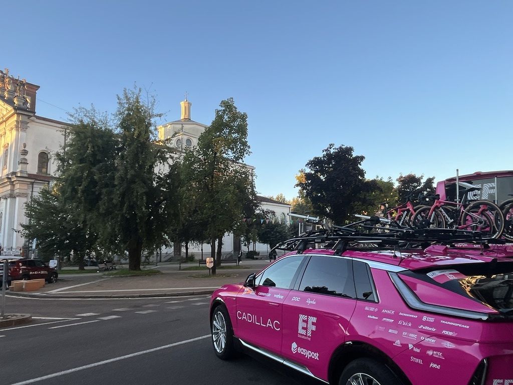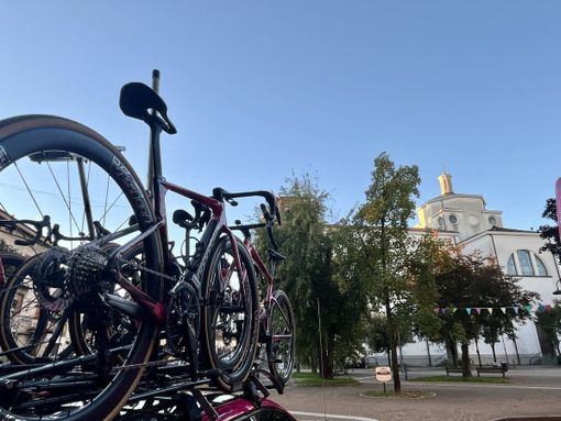 Sulla chiesa di San Michele, si stagliano delle biciclette ancora collocate sopra il tetto della macchina. Un tifoso alla Tre Valli Varesine a Busto Arsizio si ferma e ci indica: «Vede, quella è della campionessa del mondo». Magdeleine Vallieres poco dopo sarà lì, sotto i portici di San Michele, a scaldarsi con le compagne in vista del via della gara vinta poi da Elisa Longo Borghini.