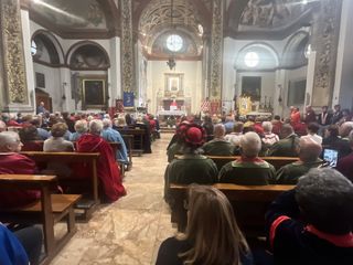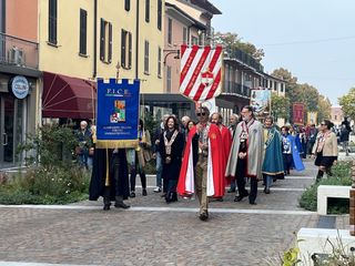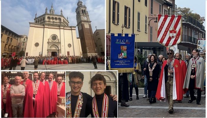 Momento indimenticabile appunto la sfilata in centro raggiungendo quel gioiello che è il santuario di Santa Maria. Foto di gruppo davanti alla chiesa, poi la messa celebrata dal prevosto Severino Pagani. Anche se il santuario è una gioia per gli occhi e per la storia dell'arte, vederlo ulteriormente colorato dai mantelli dei partecipanti si è rivelato alquanto emozionante. Non facile contenere tutti i 280 ospiti, alcuni sono rimasti ad esplorare la città. Anche a godersi un caffè nei bar della piazza o a scoprire la cantina settecentesca della pasticceria Oscar.