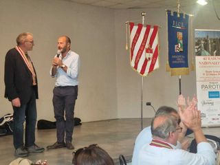 Questa mattina, partenza dal Museo del Tessile appunto: non è mancato lo scambio dei doni e visto che il sindaco Emanuele Antonelli scherzosamente si lamentava di non aver ricevuto nulla, il presidente della Fice Porzio gli ha consegnato una fetta di gorgonzola. L'assessore a Cultura e Identità Manuela Maffioli ha rimarcato «l'importanza della conservazione, valorizzazione e trasmissione delle nostre tradizioni, non come un'operazione nostalgica o passatista, ma di fondamentale consapevolezza». Sottolineando che come questo raduno sia una occasione per valorizzare il «federalismo culturale: la bellezza delle diversità, delle specificità in un unico contesto nazionale».