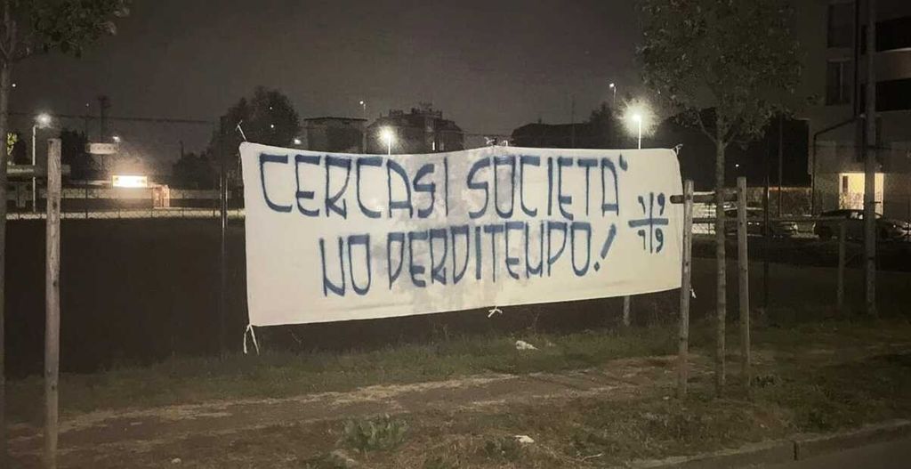 Un messaggio forte, diretto, che non lascia spazio a interpretazioni. Nella notte tra mercoledì e giovedì, in corso XX Settembre, è apparso uno striscione che recita: “Cercasi società, no perditempo!”. Firmato con il simbolo dei “1919”, sigla che identifica una parte degli ultrà biancoblù, il telo è stato appeso sulla rete metallica che delimita i campetti di allenamento adiacenti allo stadio “Carlo Speroni”, proprio dove un tempo sorgeva il cosiddetto “Maracanà”, storico parcheggio nelle giornate di partita. Questa mattina il telo è ancora presente ma è in parte stato staccato, o dal vento o dall'intervento di qualcuno.
