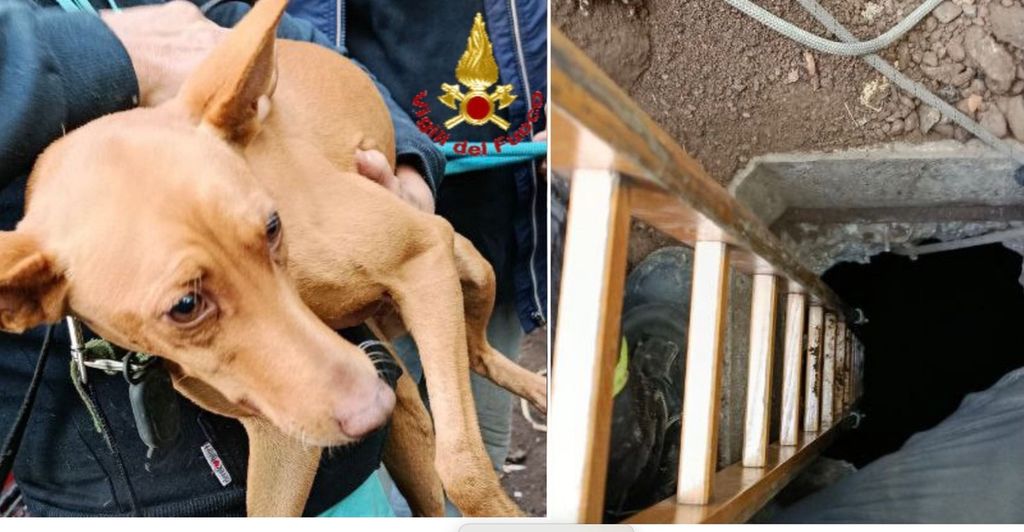 Un cane precipitato per sette metri in un pozzo è stato messo in salvo dai vigili del fuoco a Olgiate Olona.